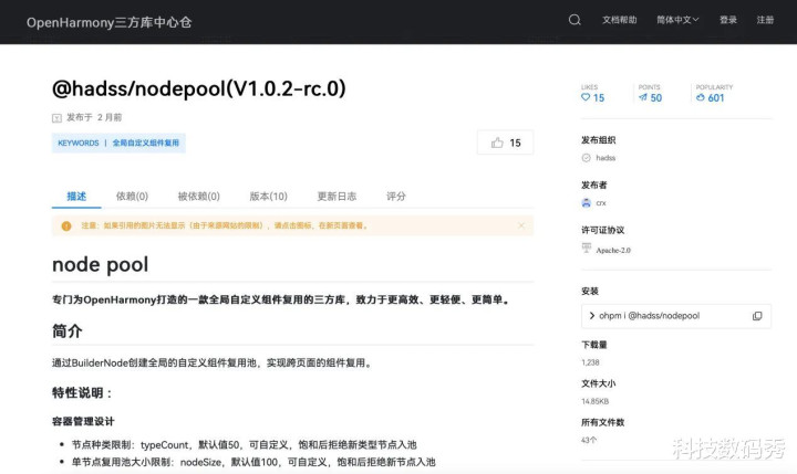 目前,“nodepool”已上线OpenHarmony社区三方库中心仓,开发者可访问“OpenHarmony官网”,点击“开发者”——>“三方库中心仓”——>搜索“nodepool”,下载使用。